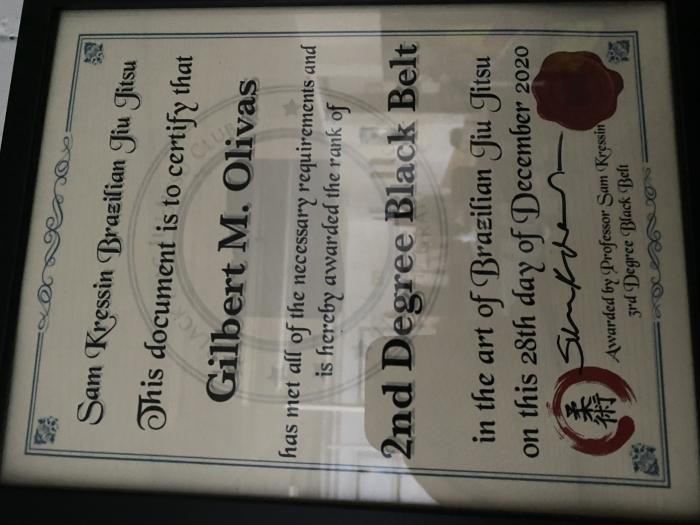 Certificates: USBJJF, YTT 200, Yoga for BJJ, IBJJF, 2nd Degree BJJ Black Belt, Scientific Wrestling, Snake Pit USA, Judo Shodan, SAW Black Belt.