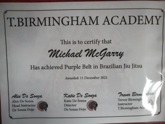 Lineage: Mitsuyo Maeda > Carlos Gracie > Carlson Gracie > Andre Pederneiras > Vitor Shaolin Ribeiro > Alex de Souza > Trevor Birmingham