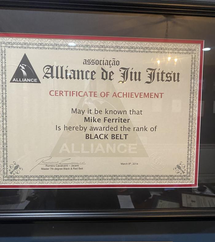 Lineage: Kano Jigoro > Tomita Tsunejiro > Mitsuyo "Count Koma" Maeda > Carlos Gracie, Sr > Helio Gracie > Rolls Gracie > Romero Cavalcanti > Michael Ferriter
