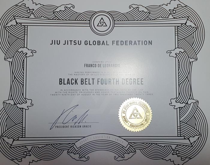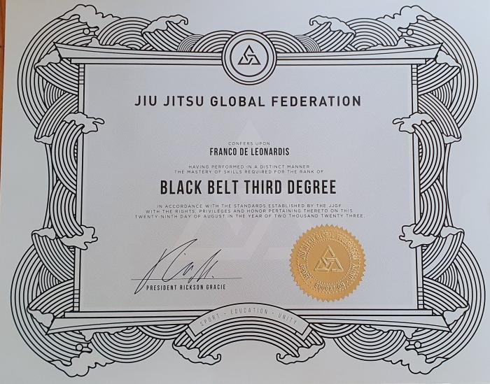Lineage: Mitsuyo Maeda > Carlos Gracie > Helio Gracie > Carlos Gracie Jr. > Aldo Januário> Franco De Leonardis