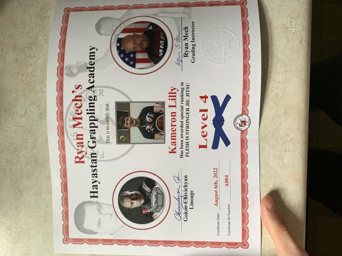 "Blue belt confirmed by promoting instructor Ryan Mech (who is also verified by me)."