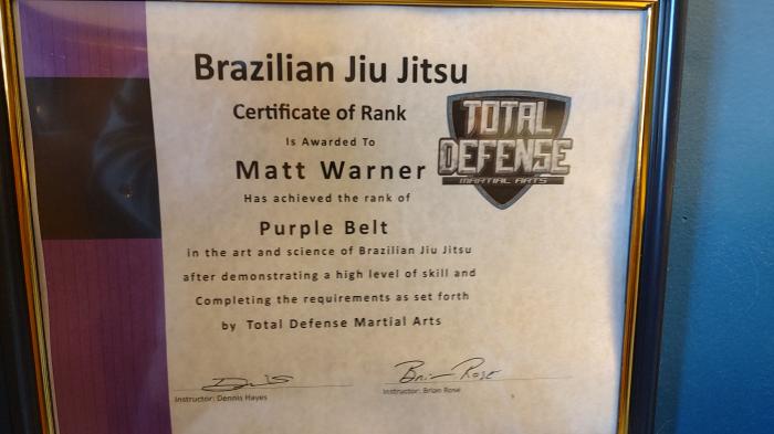 3rd & 4th stripes at Total Defense Martial Arts, which succeeded Valley Brazilian Jiu-Jitsu at the same location.