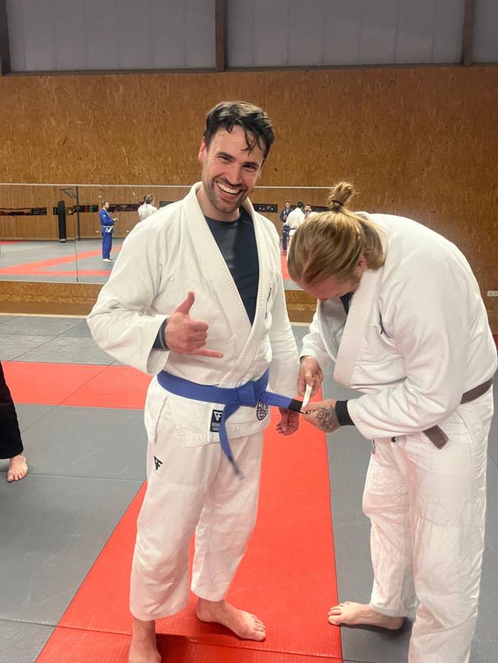 Hey :) my name is Kevin. I started BJJ in Schwerte in 2021 - Brazilian Jiu Jitsu. Before that I had no contact with this sport, I come from football, tennis and the classic gym, as I'm sure many others do. I immediately fell in love with this sport. In BJJ, you can power off on the mat after a bad day or get into a good flow with your team-mates - the mix of sport and technique is what makes it so attractive. It's the best place for me to relax, and I'm always fascinated by the great people I've met and continue to meet during this time.