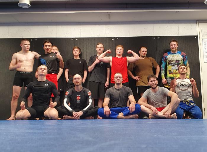 MMA grappling class at Kick Boxing Team Oulu, taught by a potato. Good fun.