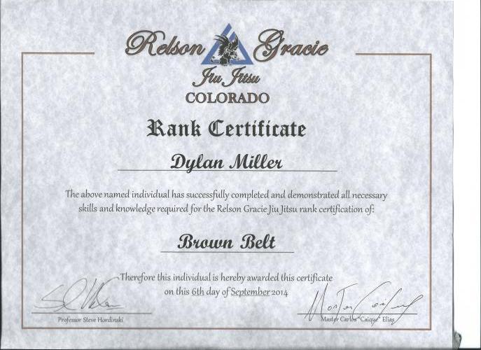 Lineage: Kano Jigoro → Tomita Tsunejiro → Mitsuyo "Count Koma" Maeda → Carlos Gracie Sr. and Helio Gracie → Carlos "Carlinhos" Gracie Jr. and Rolls Gracie → Carlos Machado → Dylan Miller