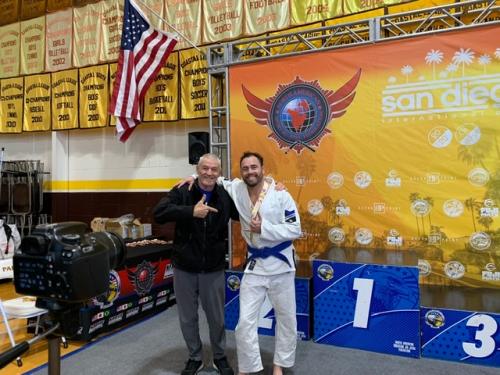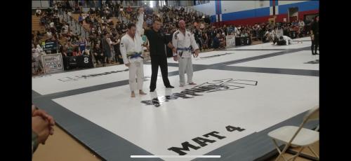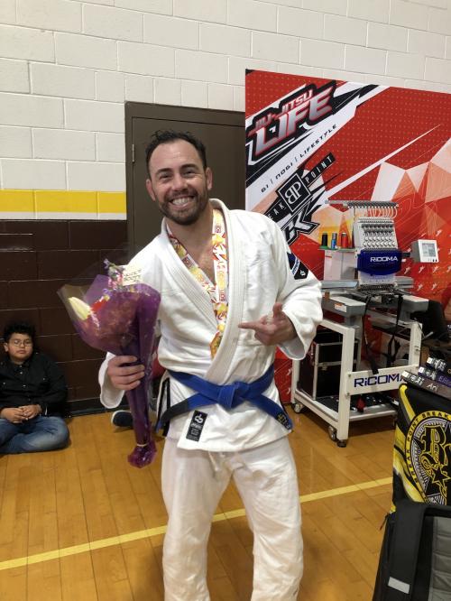 I was promoted to blue in 2003 or 2004, but then took a long time off. Just started training again in April of 2019. After my win Fabio gave me 4 stripes.